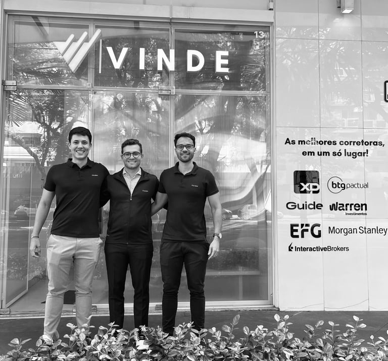 "A Vinde nasceu para transformar a forma como o brasileiro lida com investimentos e patrimônio. Fundada por profissionais experientes, surgiu da insatisfação com o modelo comissionado e desde o início adotou o Fee-Based: consultoria independente, transparente e 100% alinhada ao cliente.